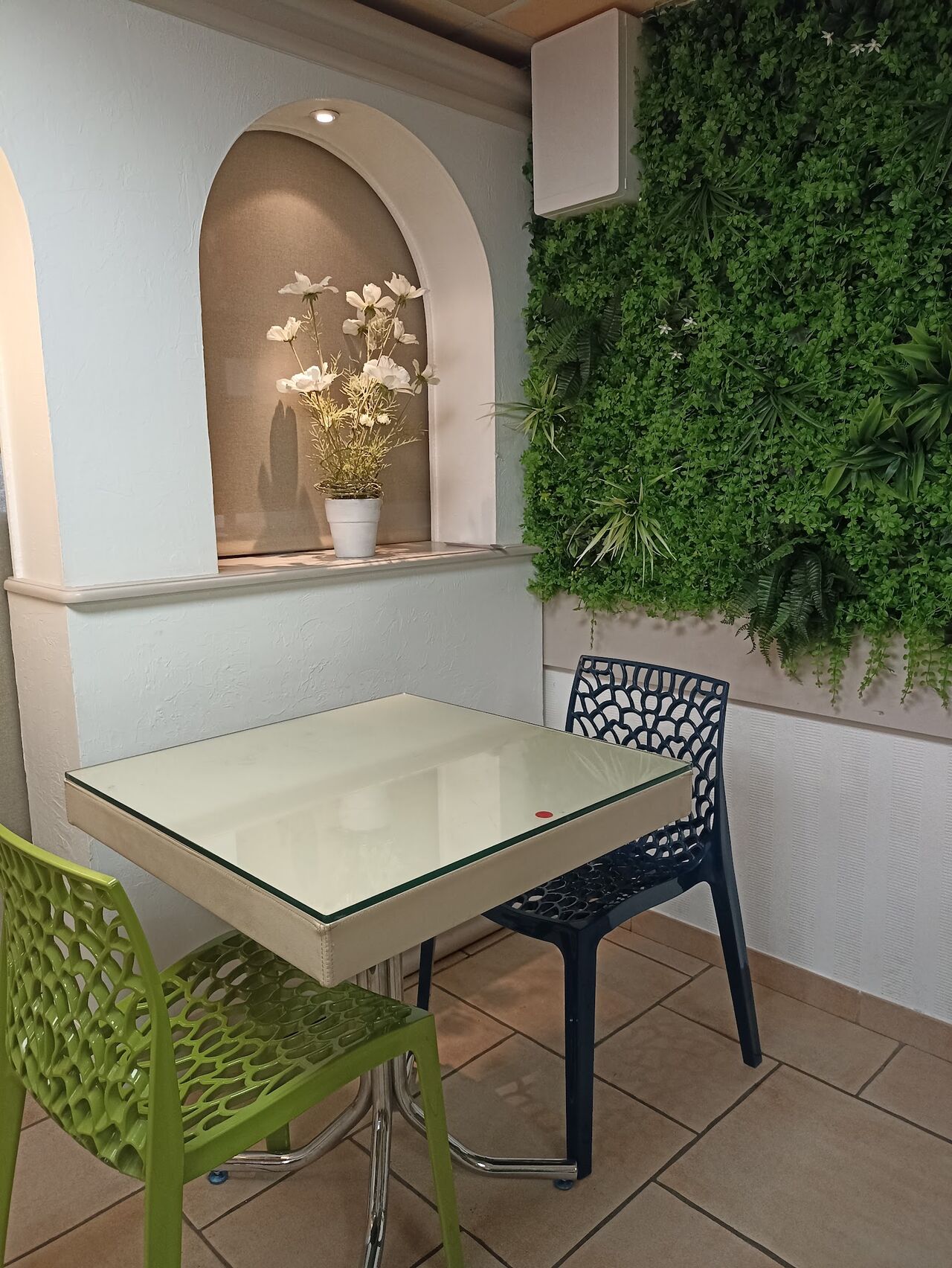 Vous pourrez profiter des différentes salles et espaces du restaurant, et de notre terrasse, ou notre véranda pour les jours de pluie. La terrasse du restaurant est calme et verdoyante. En été, vous apprécierez la climatisation des salles. Le bar du restaurant vous accueillera pour un moment entre collègues ou amis.